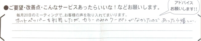 ありがとうございます。カラーのみのクーポンを作りましたので、是非ご利用ください!